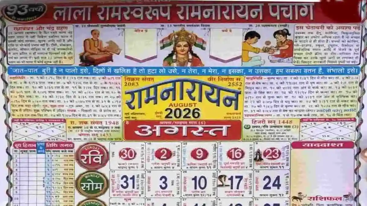 The Lala Ramswaroop Calendar 2026 August is widely used across Madhya Pradesh, Uttar Pradesh, Rajasthan, Chhattisgarh, and other Hindi-speaking states for religious planning and auspicious ceremonies.