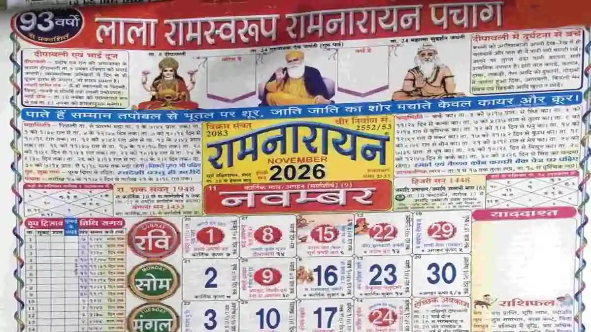 The Lala Ramswaroop Ramnarayan Calendar 2026 November edition is one of the most trusted Hindu Panchang references across North India. Devotees and families rely on the Lala Ramswaroop Ramnarayan Calendar 2026 for accurate Tithi, Nakshatra, Vrat, festival dates, Grah Sthiti, and Shubh Muhurat.